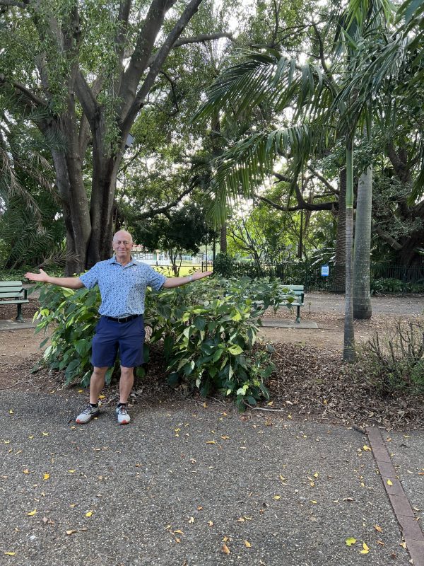 As President of the New Farm Bowls Club across the road from the park, Dean is embedded in the community that makes the park so special. Here he stands on